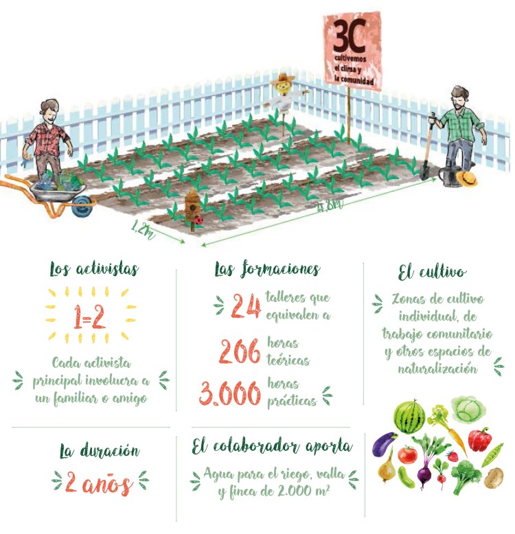 El programa de agricultura urbana 3C Cultivemos el Clima y la Comunidad nació en 2014. Está implementado en zonas urbanas y periurbanas.