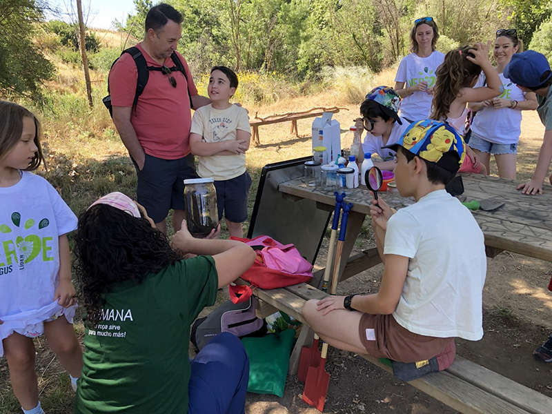 Por último, en el entorno natural del río Guadalix, el domingo 16 de junio se reunieron varias familias: con sencillos experimentos y la observación, dinamizamos un taller sobre la importancia del suelo, sus características y quiénes habitan bajo tierra. Un mundo por conocer. También se llevaron a casa un pedacito de ese universo en forma de bomba de semilla que elaboraron con propias manos.